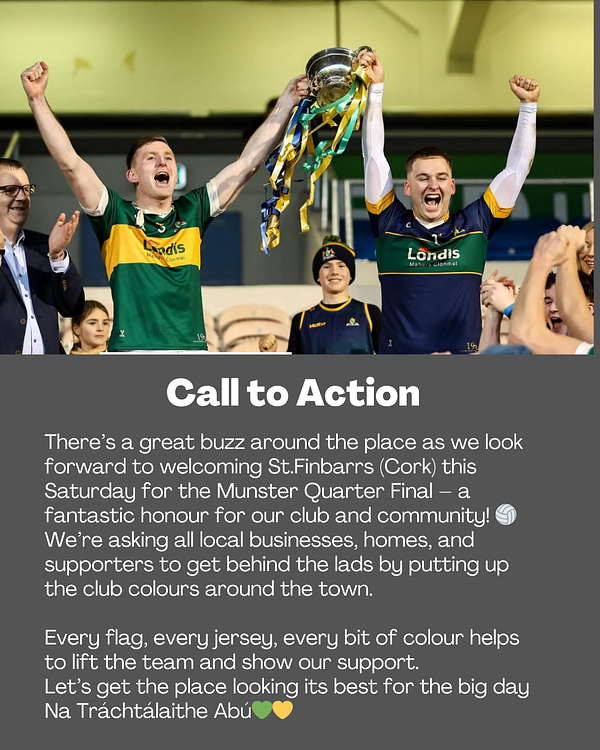 We are calling all supporters/ local businesses - Letโs get the town covered in Green and Gold ๐ข๐ก
